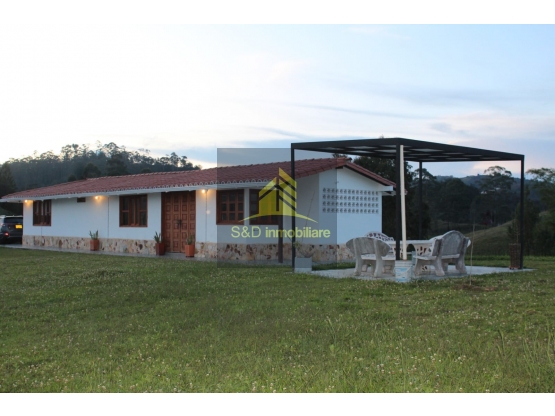 Casa, lote en Parcelacion Villa Grande. Vereda San Antonio. San Vicente Ferrer. Lote de 3340m2 . Casa de 93m2. Con 2 habitaciones cada una con baño privado . Medio baño en la.zona de sala . Cocina en Teca. Zona de ropas . Vista 360